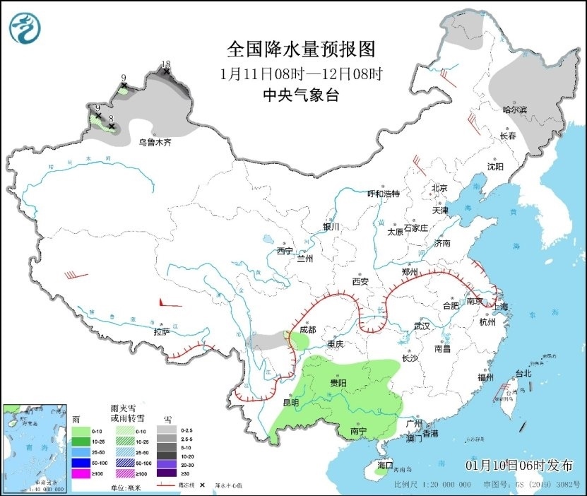 人民網(wǎng)北京1月10日電 (溫璐、高清揚)據(jù)中國氣象局官網(wǎng)消息,預計未來三天,新疆北部將有持續(xù)性降雪,部分地區(qū)累計降雪量較大,公眾需關注持續(xù)降雪天氣對日常生活及交通出行的不利影響,注意安全。另外,未來幾天,冷空氣活動較為頻繁,北方部分地區(qū)氣溫將有明顯起伏。