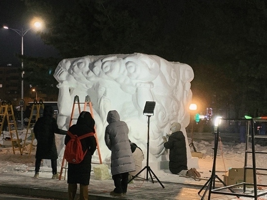 能夠與冰雪“親密接觸”,中國美術學院的熊竣苓要感謝剛剛在哈爾濱落幕的第十六屆國際大學生雪雕大賽。他所在的團隊由包括他在內(nèi)的4位南方同學組成,他們創(chuàng)作的雪雕作品《盤古開天》獲得了一等獎。這段比賽經(jīng)歷讓第一次去哈爾濱的熊竣苓非常難忘,“最近哈爾濱很火,雖然我是去參加比賽的,但能去哈爾濱一趟,也非常激動了。我記得我們從機場到酒店的路上,透過車窗看到了霧凇,一下子就讓我這個南方人感受到了北方冬天的美?!彼貞洠鲅┑駮r,他和另外3位同學都既緊張又興奮,“我們都是第一次觸摸雪做雕塑,此前在學校練習時是用泥巴或石膏,跟雪是完全不同的質(zhì)感,所以過程中我們都小心翼翼,非常緊張;同時,我們都是第一次見到這么多雪,太激動了?!?/p>