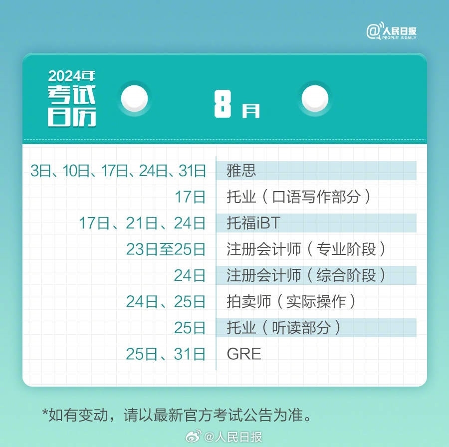 轉(zhuǎn)需!2024全年考試時(shí)間表