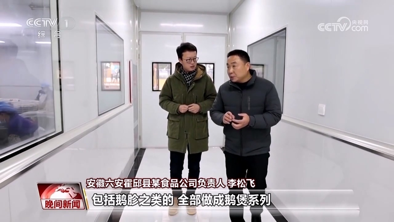 安徽六安霍邱縣某食品公司負責人 李松飛:我們?nèi)×所Z肝之后,加上鵝肉、鵝脖、鵝頭這些東西,包括鵝胗之類,全部做成鵝煲系列,我們現(xiàn)在每天要用4000到5000只鵝。
