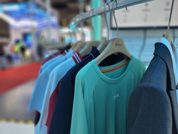 2023年6月13日拍攝的首屆上海國際碳博會(huì)上凱賽生物展示的生物基聚酰胺纖維產(chǎn)品制成的服飾。新華社記者 王默玲 攝
