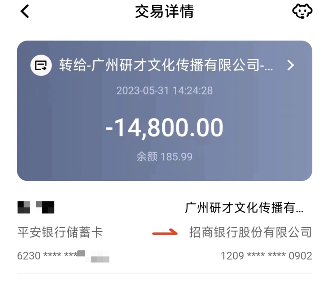 2023年5月31日,陳鑫支付14800元學(xué)費(fèi),報(bào)名了該機(jī)構(gòu)的“院校推免保送研究生課程”,對(duì)方發(fā)送的信息顯示,陳鑫報(bào)的班級(jí)為“名校渠道預(yù)錄班”。