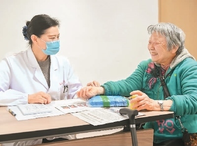 安徽省合肥市廬陽(yáng)區(qū)養(yǎng)老服務(wù)指導(dǎo)中心與安徽中醫(yī)藥大學(xué)門診部(國(guó)醫(yī)堂)醫(yī)聯(lián)體合作揭牌,該醫(yī)聯(lián)體開(kāi)設(shè)中醫(yī)科門診,助力老年群體樂(lè)享健康的晚年生活。圖為安徽中醫(yī)藥大學(xué)門診部(國(guó)醫(yī)堂)專家(左)為廬陽(yáng)區(qū)老年人義診治療。袁 兵攝(人民圖片)