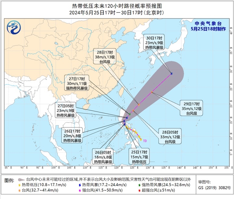 再看看菲律賓附近熱帶低壓,其中心今天下午5點(diǎn)鐘位于菲律賓馬尼拉東南方大約225公里的菲律賓群島中部,預(yù)計(jì)將于未來(lái)12小時(shí)內(nèi)加強(qiáng)為今年第1號(hào)臺(tái)風(fēng),明后天將在菲律賓呂宋島東部海面逐漸轉(zhuǎn)向東北方向移動(dòng)。