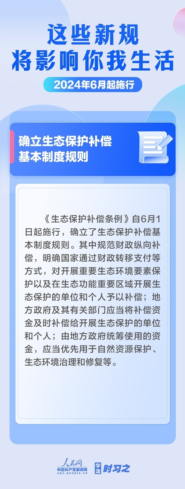 保障糧食有效供給;確立生態(tài)保護補償基本制度規(guī)則;規(guī)范保障海警機構依法履職……6月起,這些新規(guī)施行,將影響你我生活。
