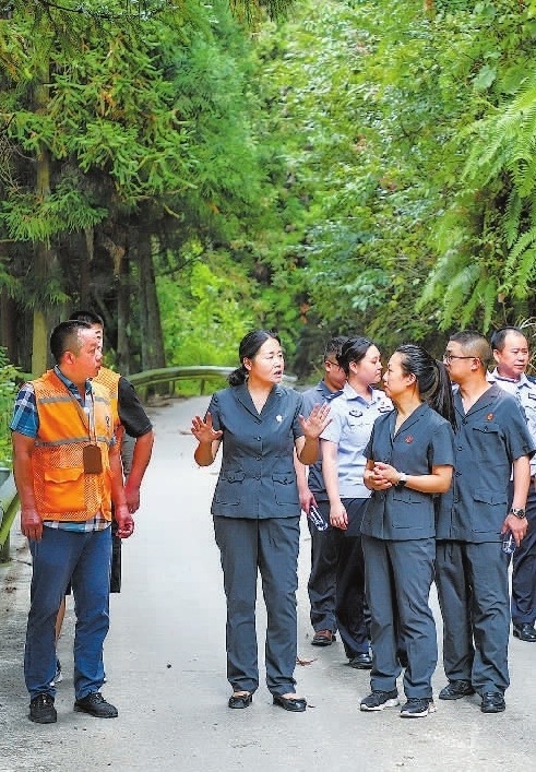 近日,重慶市黔江區(qū)人民法院干警前往黔江區(qū)馬喇國(guó)有林場(chǎng)管護(hù)站、護(hù)林點(diǎn),對(duì)森林防火卡口和護(hù)林站點(diǎn)人員值守、消防預(yù)警機(jī)制等開展走訪調(diào)查,深入林區(qū)為農(nóng)戶宣講森林防火、森林生態(tài)環(huán)境保護(hù)等法律知識(shí),營(yíng)造全民共護(hù)森林的良好氛圍,筑牢武陵山區(qū)生態(tài)屏障。圖為干警在林區(qū)走訪調(diào)查。(本報(bào)記者 劉洋 本報(bào)通訊員 楊非 攝)