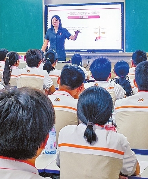 近日,湖北省??悼h人民法院蒲公英法治宣講隊(duì)成員張曉麗走進(jìn)??悼h第一中學(xué),結(jié)合高一新生年齡特點(diǎn),詳細(xì)講解了預(yù)防未成年人犯罪法等法律知識(shí),深入剖析校園暴力、猥褻性侵、網(wǎng)絡(luò)詐騙等危害,強(qiáng)調(diào)學(xué)法、守法、知法、懂法的重要性,引導(dǎo)學(xué)生們樹立正確的法治觀念。圖為張曉麗向同學(xué)們講解法律知識(shí)。(本報(bào)記者 丁俐 本報(bào)通訊員 王韻婕 攝)