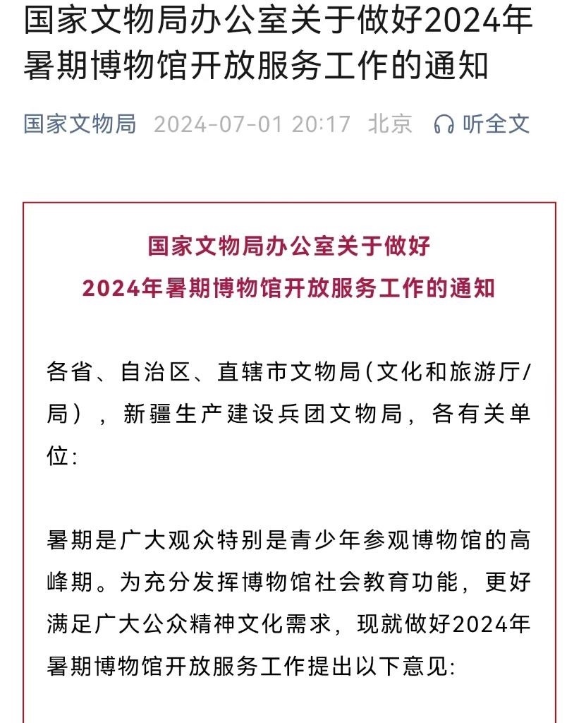 國家文物局:做好2024年暑期博物館開放服務(wù)工作