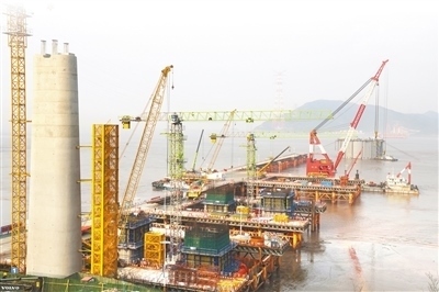 西堠門公鐵兩用大橋墩身施工現(xiàn)場。弋鵬麗攝