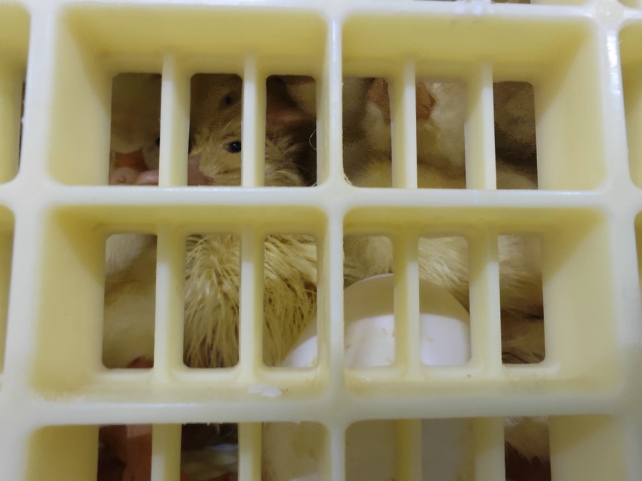 選蛋、稱重、儲蛋、洗蛋、孵化、落盤、出雛、出苗……經(jīng)過一系列程序,并經(jīng)過25天的孵化后,種蛋由孵化車轉(zhuǎn)移到出雛筐,在此等待3天,就完成了由蛋到苗的蛻變。