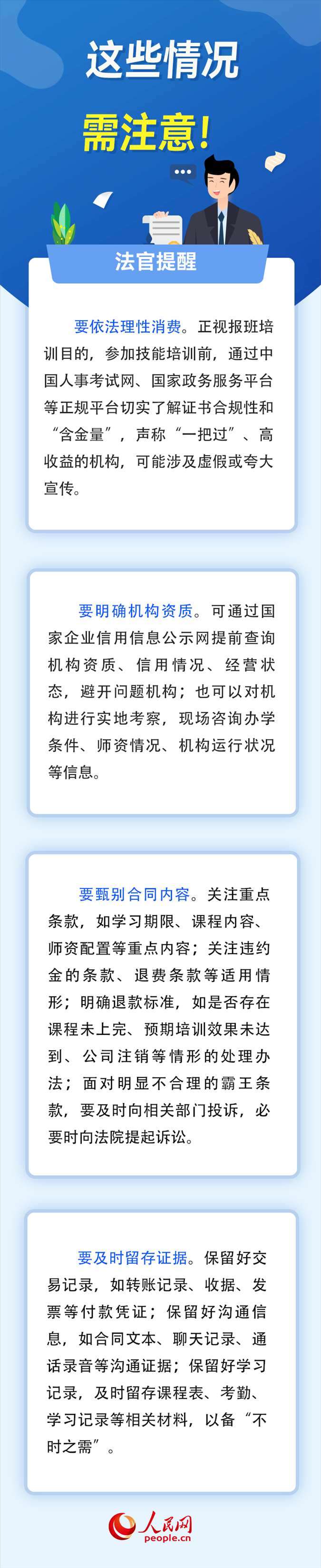 為掌握更多知識(shí)技能,“報(bào)培訓(xùn)班”成為越來越多人的選擇。然而,部分培訓(xùn)機(jī)構(gòu)虛假宣傳、半路關(guān)門、拒不退費(fèi)等套路讓消費(fèi)者防不勝防。如何識(shí)別培訓(xùn)報(bào)班中的“陷阱”、維護(hù)自身權(quán)益?對(duì)此,人民網(wǎng)采訪了北京市通州區(qū)人民法院法官助理李志峰。(高清揚(yáng) 實(shí)習(xí)生 李澤華)