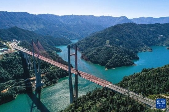 10月25日,車輛在貴州劍黎高速南孟溪大橋上行駛(無人機(jī)照片)。