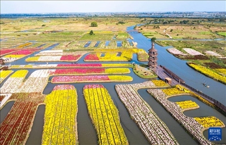 10月25日,游客在江蘇省興化市千垛景區(qū)賞菊游玩(無(wú)人機(jī)照片)。