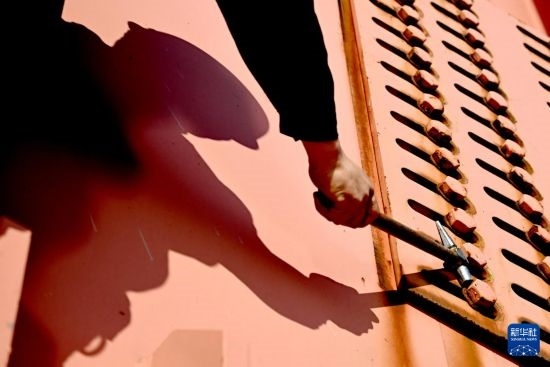 “鐺……鐺……鐺……”,在鄭焦城際鐵路黃河大橋的鋼梁洞之間,橋梁工們拿著檢查錘、敲擊著螺栓,通過(guò)聲音判斷大橋有沒有安全隱患。這樣的螺栓,在全長(zhǎng)11.3公里的鄭焦城際鐵路黃河大橋上,有將近10萬(wàn)顆。