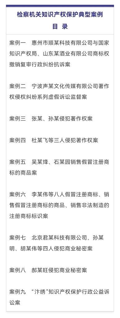 最高人民檢察院日前發(fā)布9件檢察機關(guān)知識產(chǎn)權(quán)保護典型案例,展現(xiàn)知識產(chǎn)權(quán)檢察綜合履職的工作成效。