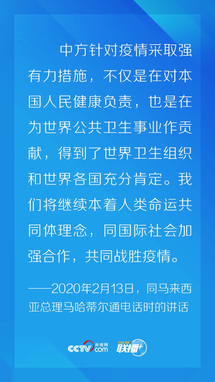 新冠肺炎疫情發(fā)生以來,習近平主席始終堅持人民至上理念,在統(tǒng)籌做好本國疫情防控和經濟社會發(fā)展工作的同時,頻繁與多個國家領導人及國際組織負責人保持電話、書信、視頻會議為主渠道的“云外交”溝通,處處體現(xiàn)著習近平主席以人民為中心的發(fā)展思想。