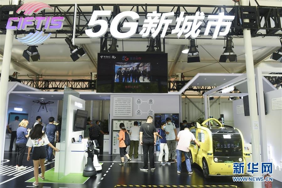 觀眾在2020年中國國際服務貿易交易會5G通信服務專題展區(qū)參觀(2020年9月7日攝)。新華社記者魯鵬攝
