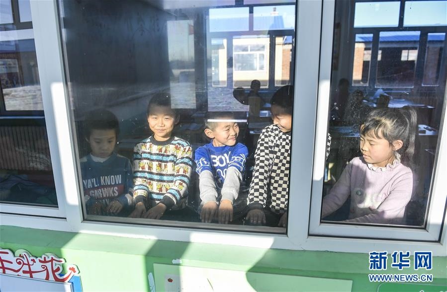 吉林省德惠市邊崗鄉(xiāng)臥虎村小學學生在戶外活動后圍著教室內的環(huán)流散熱器取暖(2018年12月26日攝)。新華社記者許暢攝