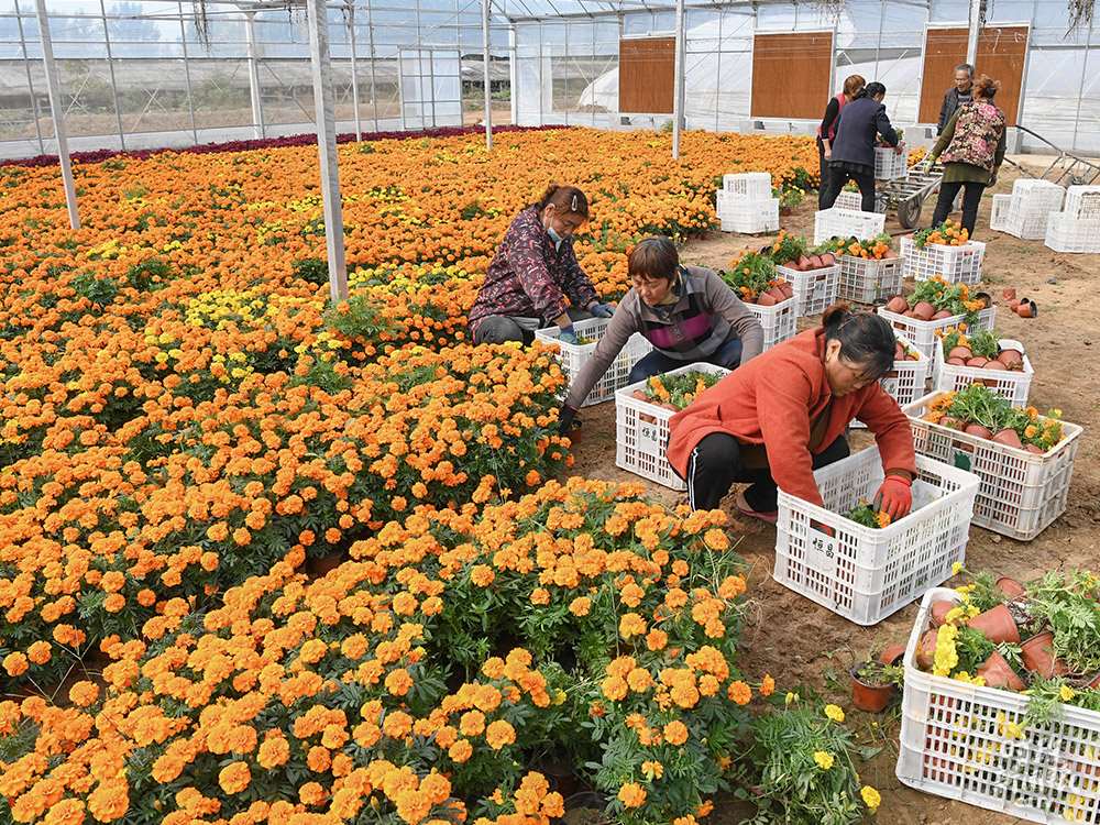 △山東棗莊市山亭區(qū)因地制宜發(fā)展花卉培育,帶動(dòng)貧困村民多渠道增收。