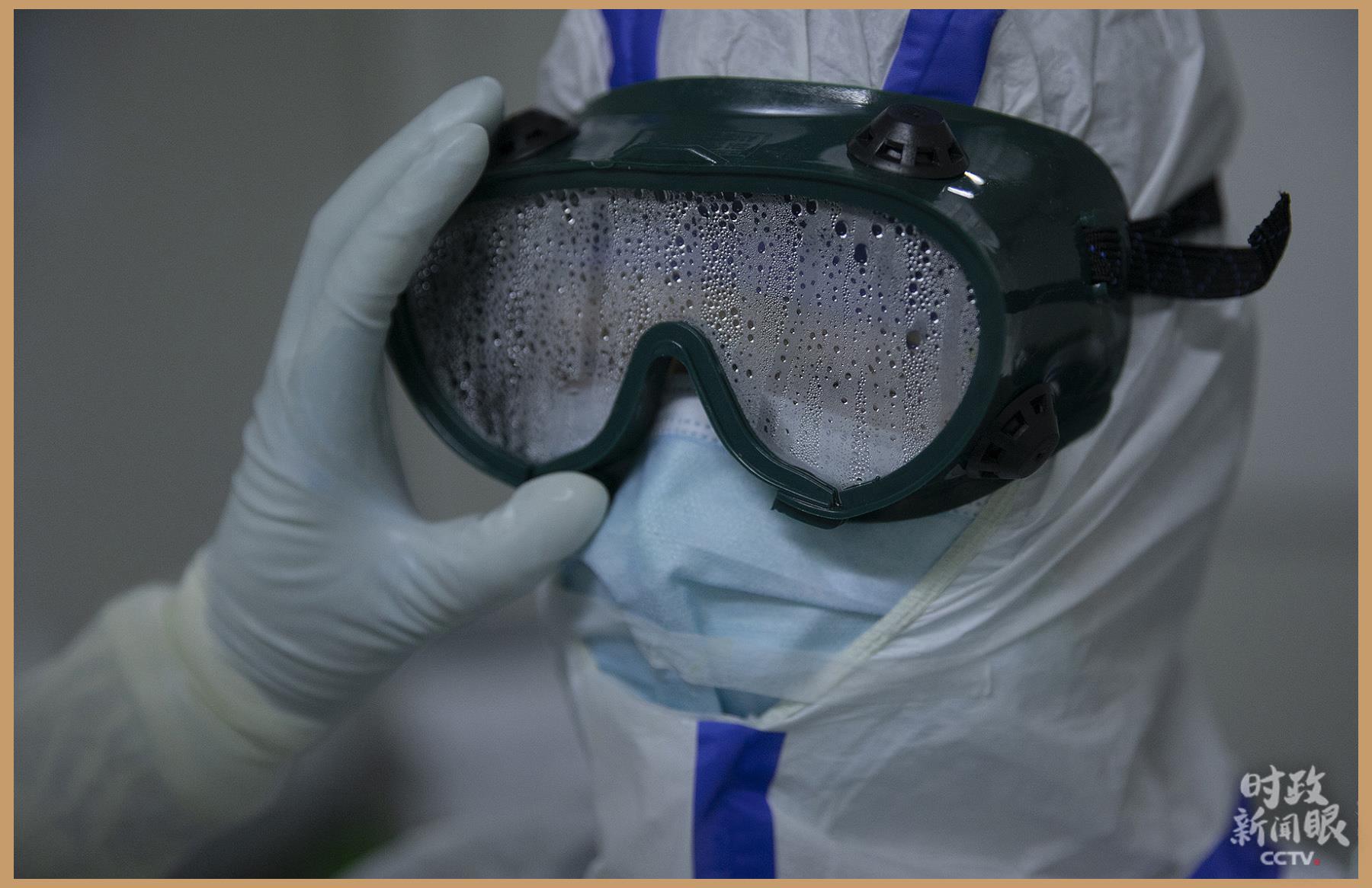 △2020年2月24日,武漢客廳方艙醫(yī)院援鄂醫(yī)療隊(duì)員的護(hù)目鏡。