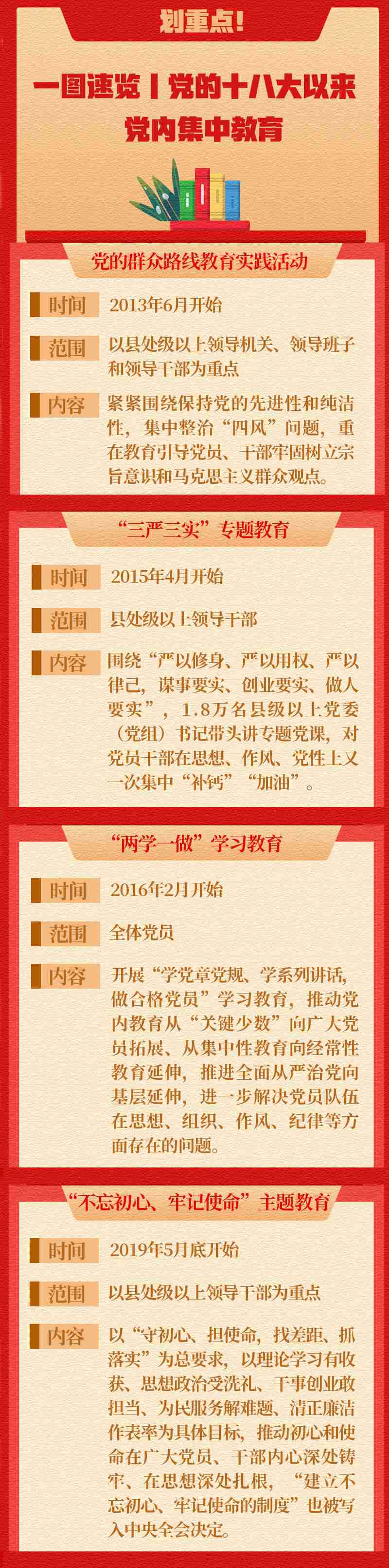 回看黨的十八大以來(lái),從黨的群眾路線教育實(shí)踐活動(dòng)、“三嚴(yán)三實(shí)”專題教育、“兩學(xué)一做”學(xué)習(xí)教育、“不忘初心、牢記使命”主題教育……黨內(nèi)思想教育緊扣黨和國(guó)家中心工作展開(kāi),在不同時(shí)期有不同的切入角度,貫穿的一條主線就是加強(qiáng)黨的執(zhí)政能力建設(shè)和先進(jìn)性建設(shè)。