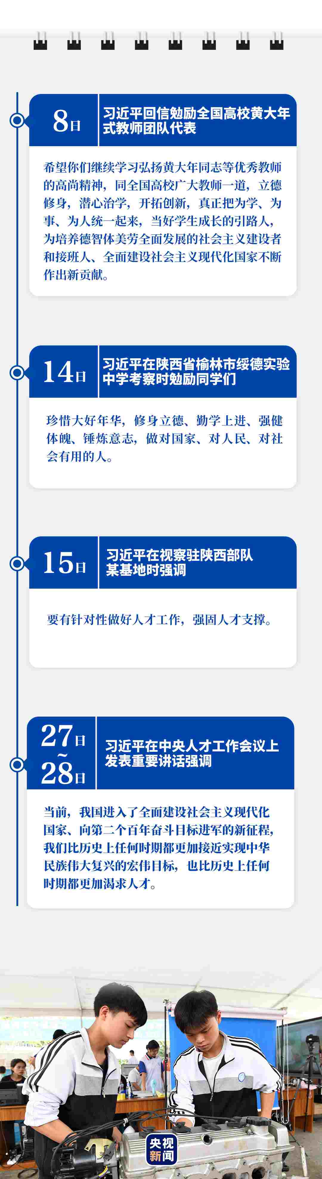 剛剛過去的9月,給人民英雄敬獻花籃,緬懷英烈、表達哀思;赴革命舊址考察,強調(diào)堅守信仰、堅定信念;出席重要會議,擘畫為黨育人、為國育才;開展多次“云外交”活動,主張講信修睦、合作共贏……習(xí)近平行程滿滿,話語鏗鏘。