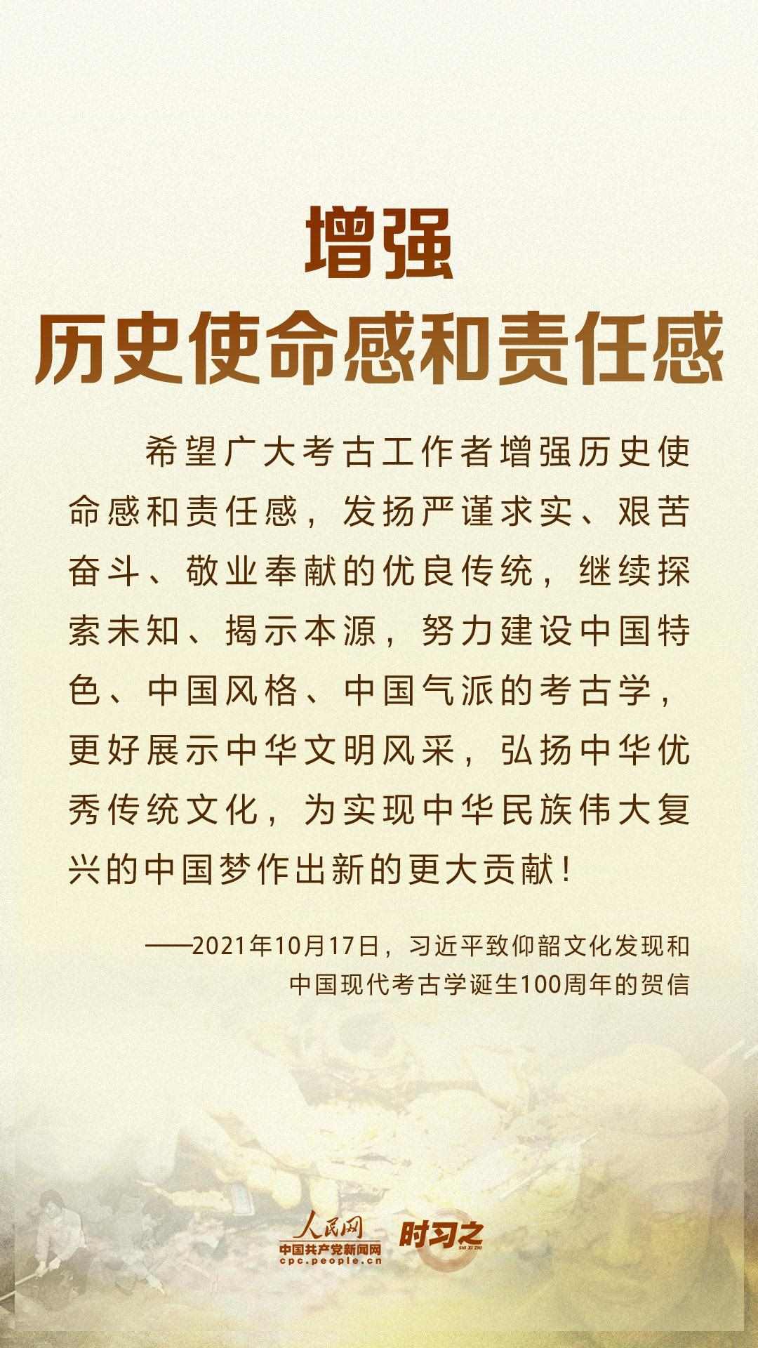 10月17日,在仰韶文化發(fā)現(xiàn)和中國現(xiàn)代考古學誕生100周年之際,中共中央總書記、國家主席、中央軍委主席習近平發(fā)來賀信,代表黨中央向全國考古工作者致以熱烈的祝賀和誠摯的問候。
