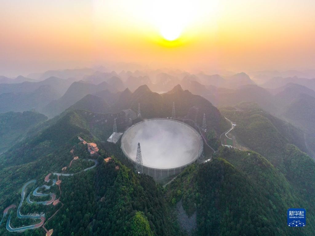 3月31日清晨拍攝的“中國(guó)天眼”全景(維護(hù)保養(yǎng)期間拍攝,無(wú)人機(jī)照片)。新華社記者歐東衢攝