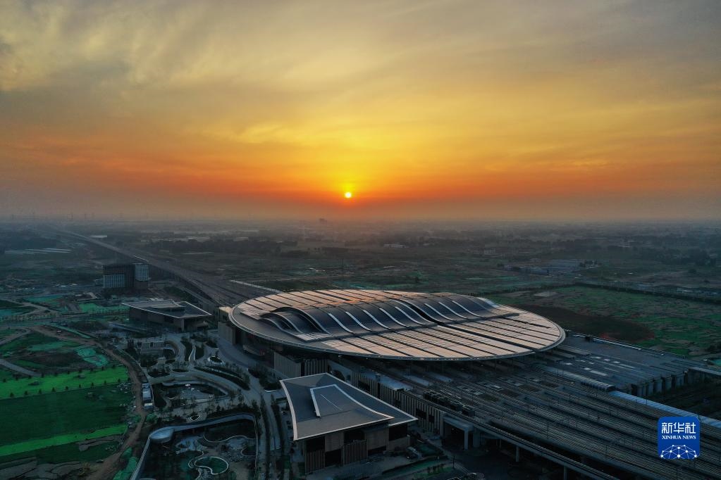 這是京雄城際鐵路雄安站(7月1日攝,無(wú)人機(jī)照片)。新華社記者牟宇攝