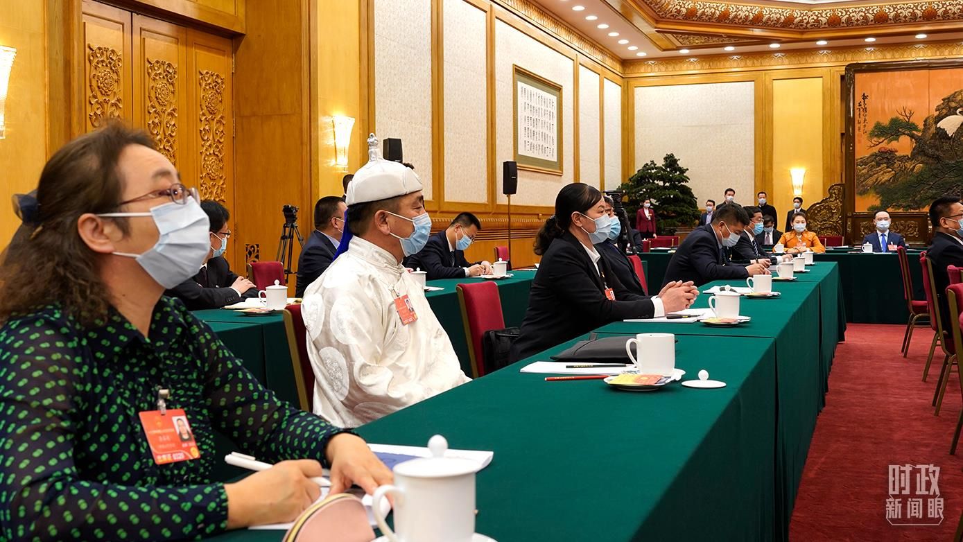 △2022年3月5日,內(nèi)蒙古代表團(tuán)審議現(xiàn)場。(總臺央視記者石丞拍攝)