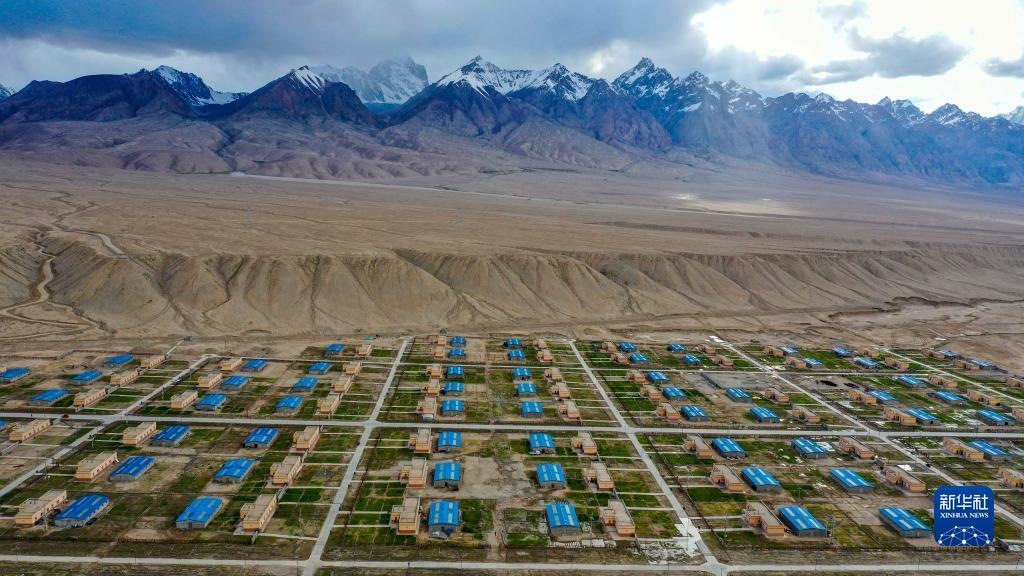 這是在新疆塔什庫(kù)爾干塔吉克自治縣縣城附近拍攝的塔提庫(kù)力易地扶貧搬遷安置點(diǎn)(2019年7月1日攝,無(wú)人機(jī)照片)。新華社記者 胡虎虎 攝