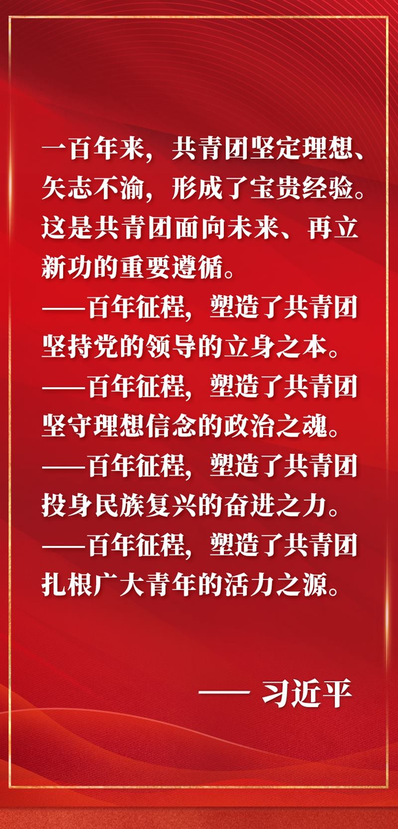 慶祝中國共產主義青年團成立100周年大會10日上午在北京人民大會堂隆重舉行。中共中央總書記、國家主席、中央軍委主席習近平在會上發(fā)表重要講話,全面回顧百年來共青團堅定不移聽黨話、跟黨走的奮斗歷程,深刻闡明共青團和青年工作的寶貴經驗,對當代青年寄予殷切期望,對做好新時代共青團工作提出明確要求。