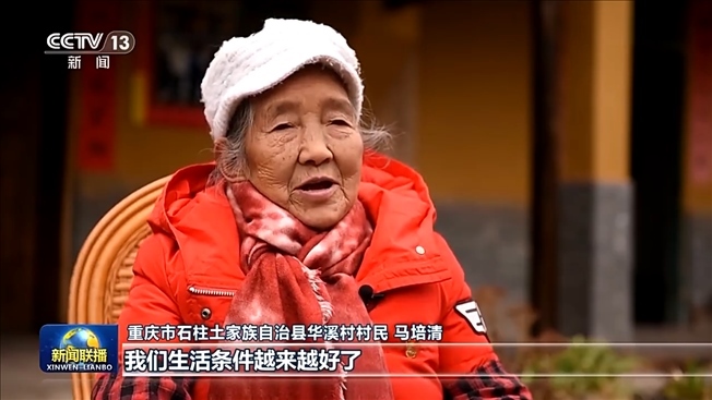 重慶市石柱土家族自治縣華溪村村民 馬培清:我們生活條件越來越好了,不愁吃、不愁穿。我們住的房子也寬敞了,一家大小吃的自來水干干凈凈的?,F(xiàn)在我們的生活條件發(fā)生的變化是習(xí)總書記給我們帶來的,非常高興。
