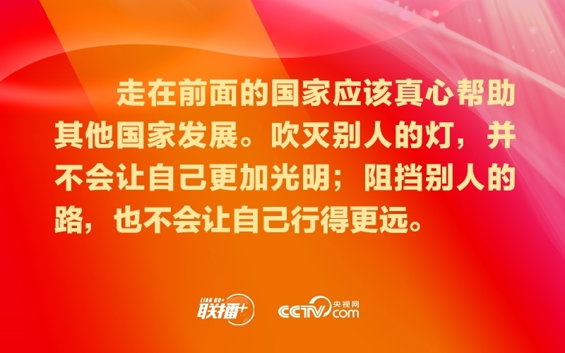 要堅持共享機(jī)遇、共創(chuàng)未來,共同做大人類社會現(xiàn)代化的“蛋糕”,努力讓現(xiàn)代化成果更多更公平惠及各國人民,堅決反對通過打壓遏制別國現(xiàn)代化來維護(hù)自身發(fā)展“特權(quán)”。