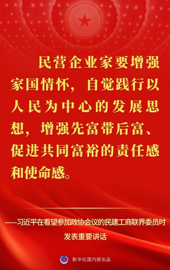 “黨中央始終堅(jiān)持‘兩個(gè)毫不動(dòng)搖’、‘三個(gè)沒(méi)有變’,始終把民營(yíng)企業(yè)和民營(yíng)企業(yè)家當(dāng)作自己人?!?月6日,習(xí)近平總書記在看望參加全國(guó)政協(xié)十四屆一次會(huì)議的民建、工商聯(lián)界委員并參加聯(lián)組會(huì)時(shí)發(fā)表重要講話,強(qiáng)調(diào)要引導(dǎo)民營(yíng)企業(yè)和民營(yíng)企業(yè)家正確理解黨中央方針政策,增強(qiáng)信心、輕裝上陣、大膽發(fā)展。