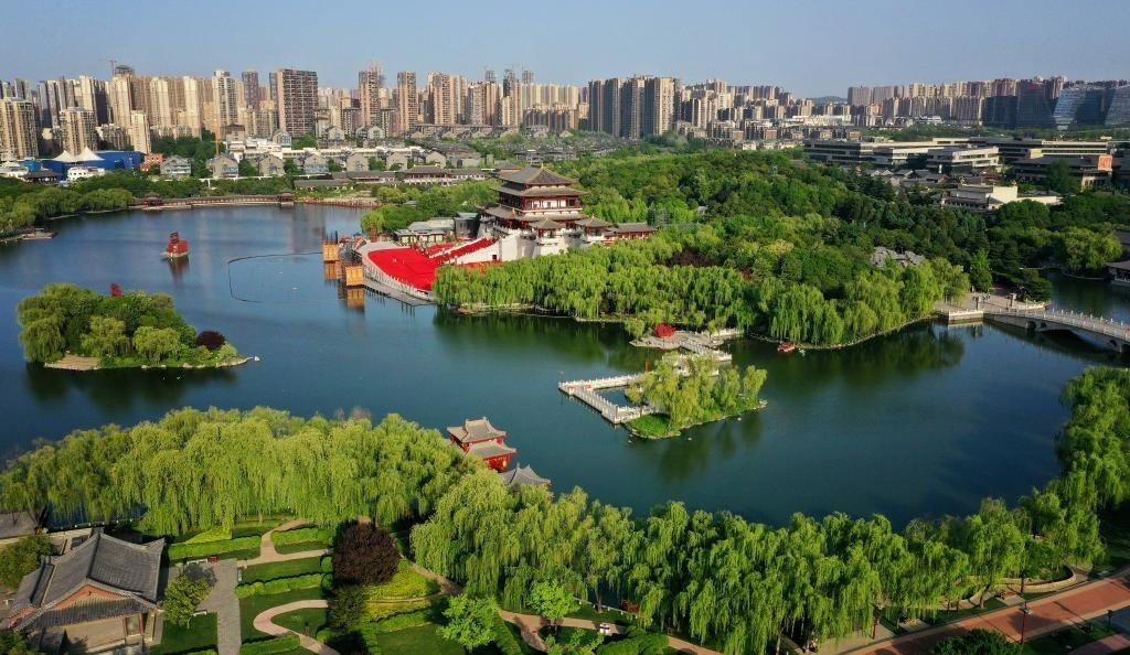 2023年4月25日的西安大唐芙蓉園(無人機(jī)照片)。新華社記者 劉瀟 攝
