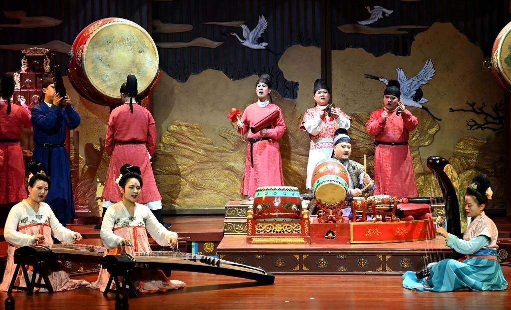 2023年1月24日,西安大唐芙蓉園內(nèi)上演的舞臺(tái)劇《鼓》。新華社記者 劉瀟 攝