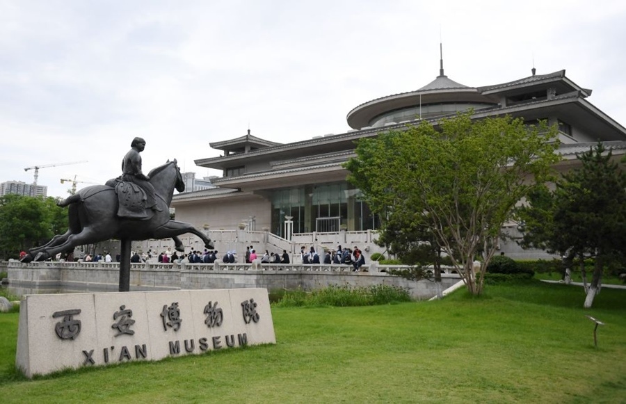 5月8日,游客在西安博物院參觀游覽。新華社記者 李一博 攝
