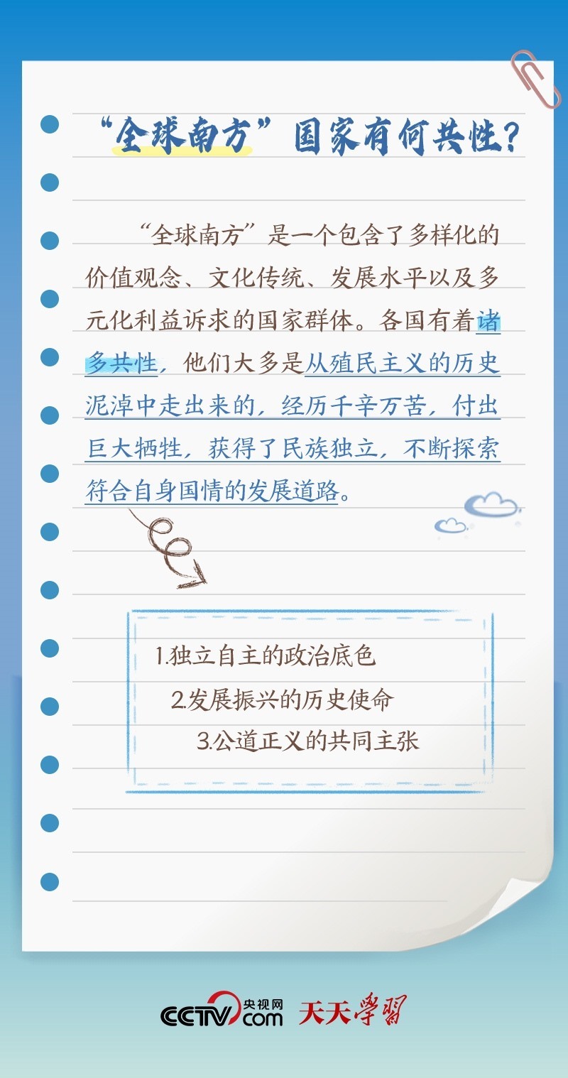 此次出訪,習近平主席在向約翰內斯堡金磚國家工商論壇閉幕式發(fā)表致辭、同南非總統(tǒng)拉馬福薩共同會見記者等場合均提及“全球南方”。什么是“全球南方”?“全球南方”國家有何共性?中國為何是“全球南方”的天然成員?跟著央視網《天天學習》一起了解。