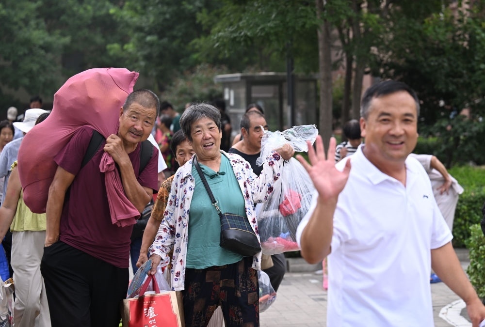 8月20日,在天津市西青區(qū)赤龍南街道一臨時安置點,村民收拾行李準備回家。當日,天津市靜海區(qū)東淀蓄滯洪區(qū)37000余名轉(zhuǎn)移安置人員全部返回臺頭鎮(zhèn)、獨流鎮(zhèn)、王口鎮(zhèn)等地。