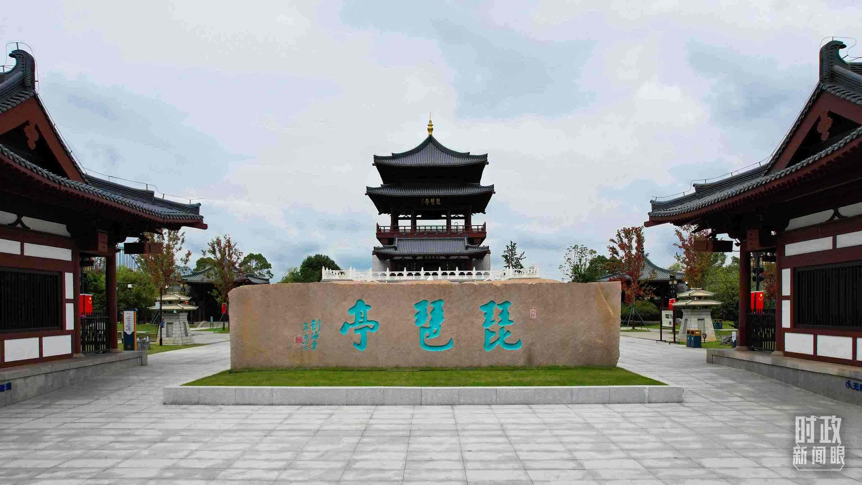 △九江琵琶亭。10月10日下午,習近平在九江考察時登上此亭遠眺長江。(總臺央視記者范凱拍攝)