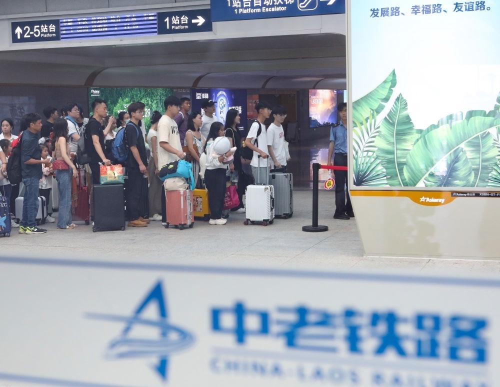 在云南景洪市的中老鐵路西雙版納站,旅客有序進(jìn)入站臺(tái)乘車(2023年10月5日攝)。新華社發(fā)(李云生 攝)