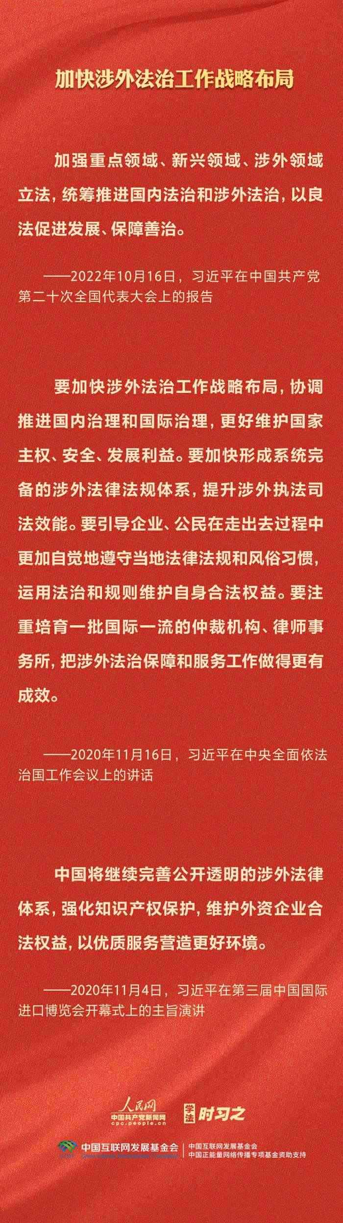今年是貫徹落實(shí)黨的二十大精神的開局之年。中共中央政治局決定從今年4月開始,在全黨自上而下開展學(xué)習(xí)貫徹習(xí)近平新時代中國特色社會主義思想主題教育。習(xí)近平法治思想是習(xí)近平新時代中國特色社會主義思想的重要組成部分,人民網(wǎng)·中國共產(chǎn)黨新聞網(wǎng)推出學(xué)法時習(xí)之·學(xué)習(xí)習(xí)近平法治思想系列策劃,本篇聚焦“堅持統(tǒng)籌推進(jìn)國內(nèi)法治和涉外法治”。