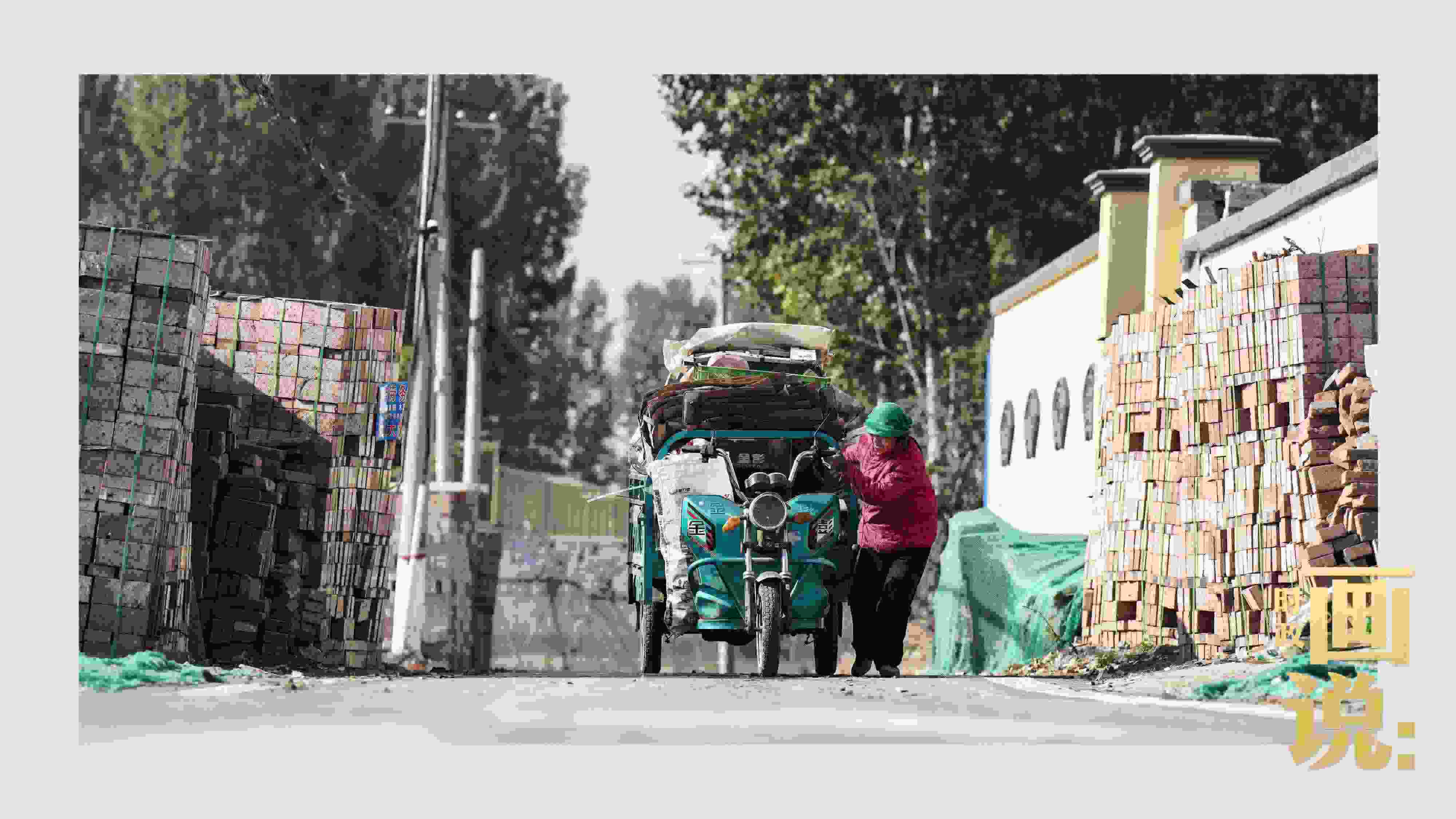 △買(mǎi)早點(diǎn)的老人走過(guò)村道。水峪嘴村,北京。大水過(guò)后,受災(zāi)嚴(yán)重的北京永定河流域村落加緊重建。