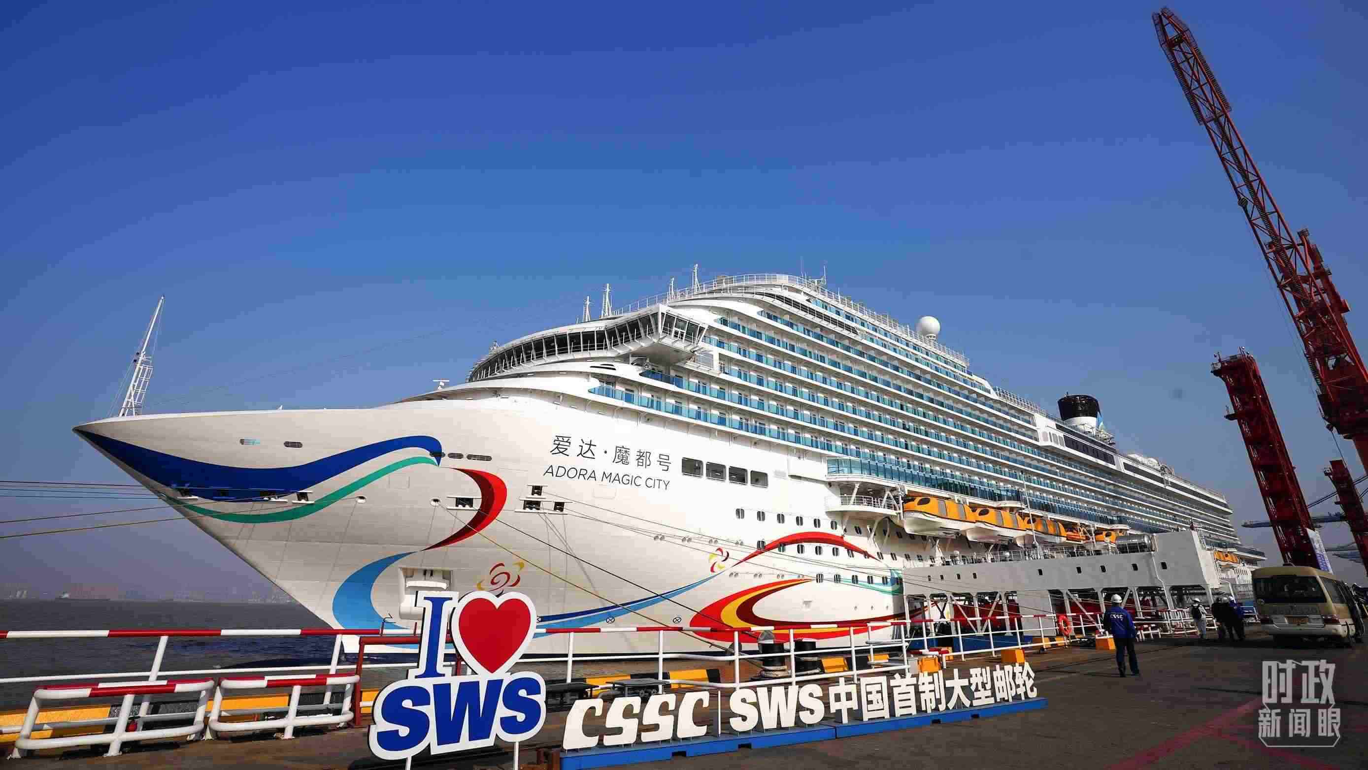 △中國首制大型游輪——愛達(dá)·魔都號(hào)。(總臺(tái)央視記者劉琦拍攝)