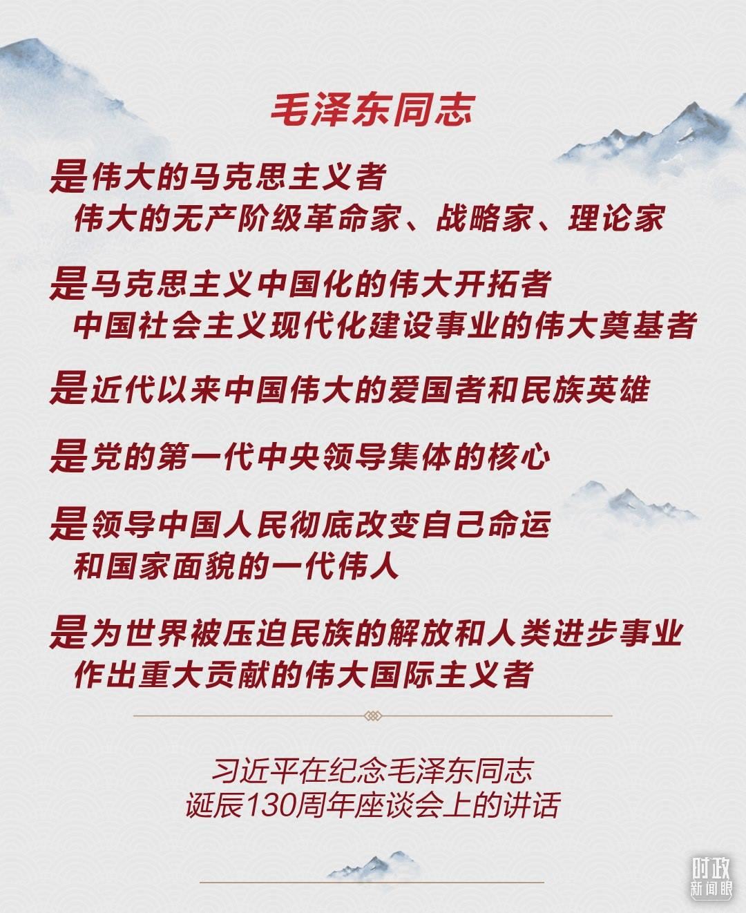 《時政新聞眼》注意到,與10年前的講話相比,總書記在今年這次座談會上增加了兩個新的表述:毛澤東同志是“中國社會主義現(xiàn)代化建設事業(yè)的偉大奠基者”,“是為世界被壓迫民族的解放和人類進步事業(yè)作出重大貢獻的偉大國際主義者”。