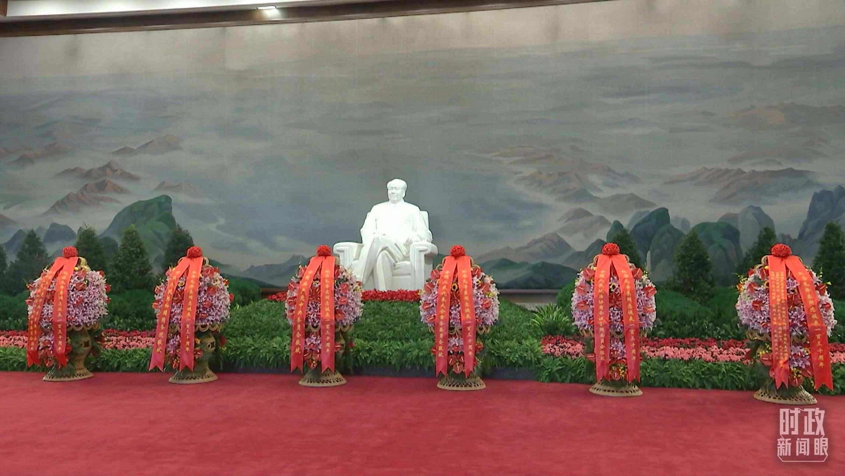 △座談會前,習近平等領導同志來到毛主席紀念堂。北大廳內(nèi),中共中央,全國人大常委會,國務院,全國政協(xié),中央軍委,各民主黨派、全國工商聯(lián)和無黨派愛國人士敬獻的花籃擺放在毛澤東同志坐像正前方。(總臺央視記者郭鴻拍攝)