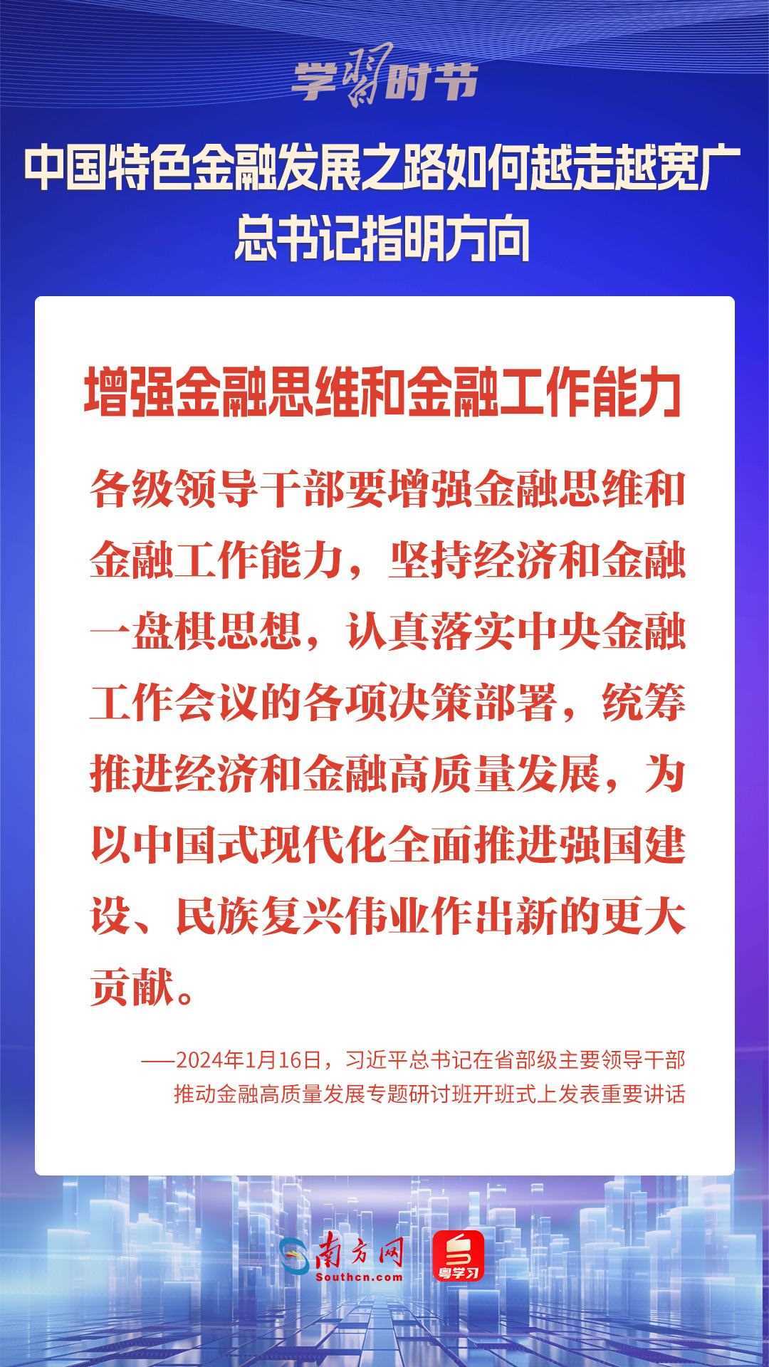 1月16日,中共中央總書記、國家主席、中央軍委主席習(xí)近平在省部級主要領(lǐng)導(dǎo)干部推動(dòng)金融高質(zhì)量發(fā)展專題研討班開班式上發(fā)表重要講話,為中國特色金融發(fā)展之路指明方向。