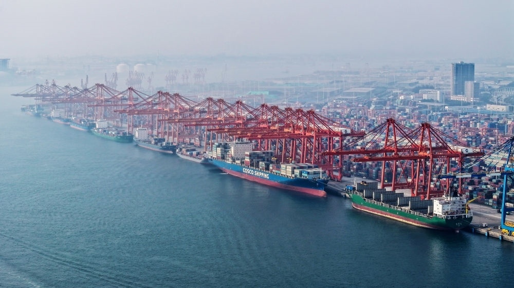 2024年3月28日,在廣西欽州港碼頭,多艘海輪在排隊卸貨(無人機照片)。據(jù)統(tǒng)計,截至3月29日,今年西部陸海新通道鐵海聯(lián)運班列運輸集裝箱貨物20.03萬標箱,同比增長7.2%。