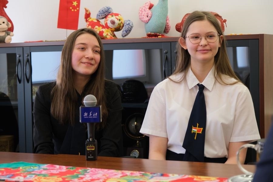 2023年2月7日,在匈牙利首都布達(dá)佩斯,匈中雙語學(xué)校學(xué)生胡靈月(左)和宋智孝接受新華社記者采訪。新華社記者 鄧耀敏 攝